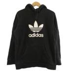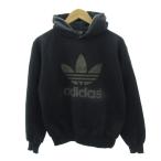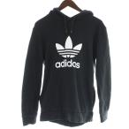 ◇ adidas アディダス 三つ葉 トレフォイル 裏起毛 長袖 プルオーバーパーカー サイズUS S UK 10 ブラック メンズ P 【中古】