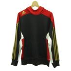 アディダス adidas パーカー スウェット 長袖 プルオーバー ロゴ 刺繍 M 赤 レッド 黒 ブラック ゴールド色 /XZ ■GY58 メンズ