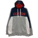 adidas プリントスウェット パーカー XL 程 ネイビー グレー アディダス スポーツ 裏起毛 ビッグサイズ 古着卸 アメリカ仕入 a703-5653