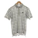 アディダス adidas ポロシャツ M 白 グレー 水色 チェック柄 ボタンダウンカラー 半袖 ロゴ刺繍 /RP ■GY58 メンズ