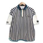 アディダス adidas デサント製 ポロシャツ 半袖 ストライプ L 白 ホワイト 青 ブルー /YJ ■ECT メンズ