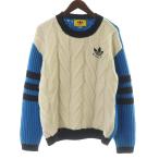 グッチ GUCCI アディダス adidas ケーブルニット セーター 長袖 ウール ロゴ刺繍 プルオーバー 727434 XKCRG S 青 ブルー 白 ホワイト