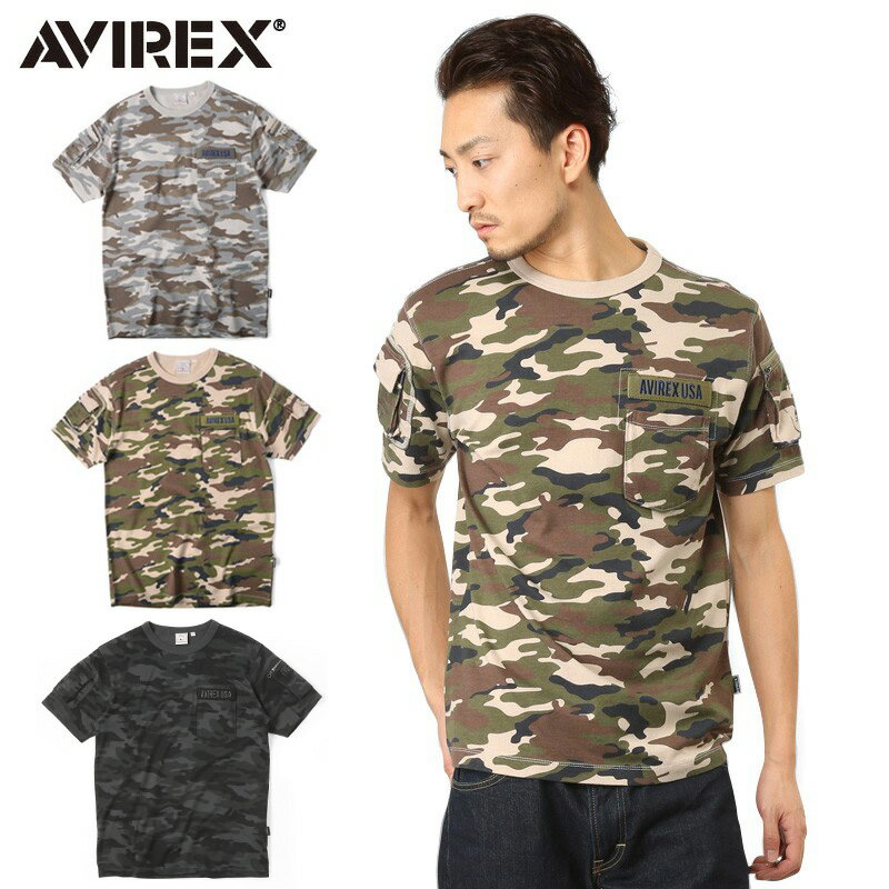 【最短即日発送】★AVIREX アビレックス 6143387 FATIGUE クルーネックTシャツ CAMO【クーポン対象外】【T】|ミリタリー メンズ カモフラージュ カモ柄 迷彩 半袖 ポケット アメカジ USA トップス カジュアル ブランド ファッション