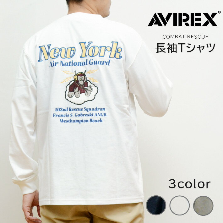 【スーパーセール10%OFF】AVIREX アビレックス ロンT バックプリント NewYork モンキー s(783-3230067) 長袖Tシャツ ロンティー 丸首 メンズ カジュアル アメカジ ミリタリー ブランド アヴィレックス