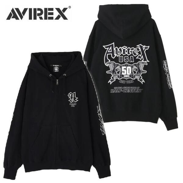 Avirex アビレックス ジップアップ パーカー 刺繍 50周年 グラフィック AVIREX 50TH ANNIVERSARY GRAPHIC ZIP UP PARKA 783-5231005-010【国内正規品/7835231005/ミリタリー/フルジップ】