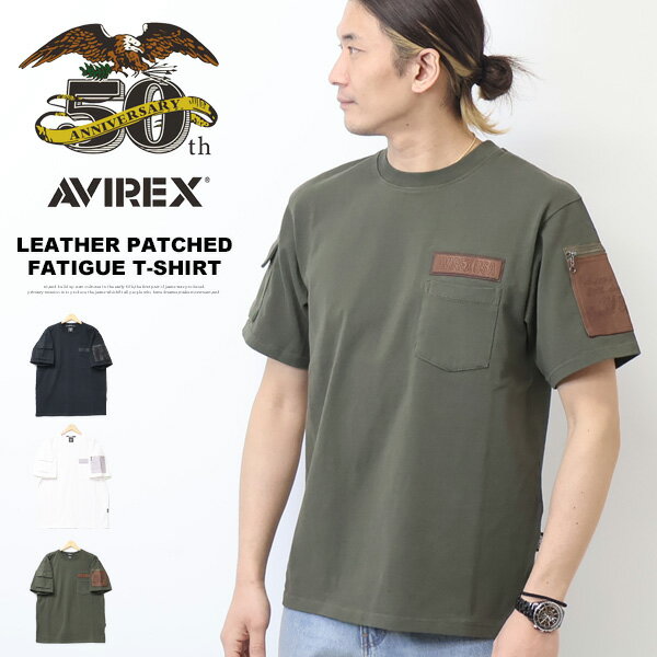 AVIREX アビレックス 50周年記念 Tシャツ 50th レザー パッチド ファティーグ 半袖Tシャツ LEATHER PATCHED FATIGUE T-SHIRT ミリタリー メンズ 783-5134012