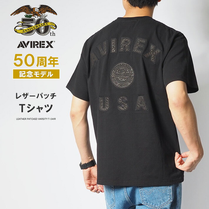 AVIREX アビレックス 50周年記念 Tシャツ 半袖 レザー アップリケ 本革 (783-5134013) 半袖Tシャツ メンズ カジュアル アメカジ ミリタリー ブランド アヴィレックス