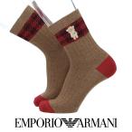 エンポリオ アルマーニ ソックス メンズ 毛混 ジャガードチェックマンガベア刺繍 ミドル丈 カジュアル 日本製 靴下 EMPORIO ARMANI 02345173