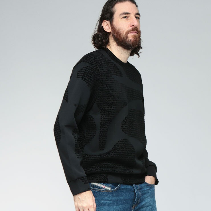 エンポリオアルマーニ スウェット トップス EMPORIO ARMANI メンズ フロッキー ロゴ クルーネック トレーナー プルオーバー EAEM2900AF10013 ブランド シンプル 大人 カジュアル
