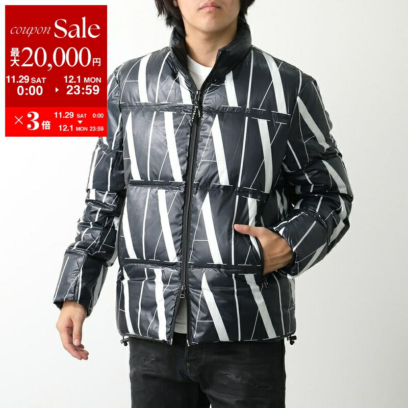 【最大2万円OFFクーポン対象・11/29~12/1限定】ARMANI EXCHANGE A/X アルマーニ エクスチェンジ ダウンジャケット 8NZBP8 ZNULZ メンズ ハイネック ロゴ 総柄 22AR/BLACK-ICON-ALLOVER