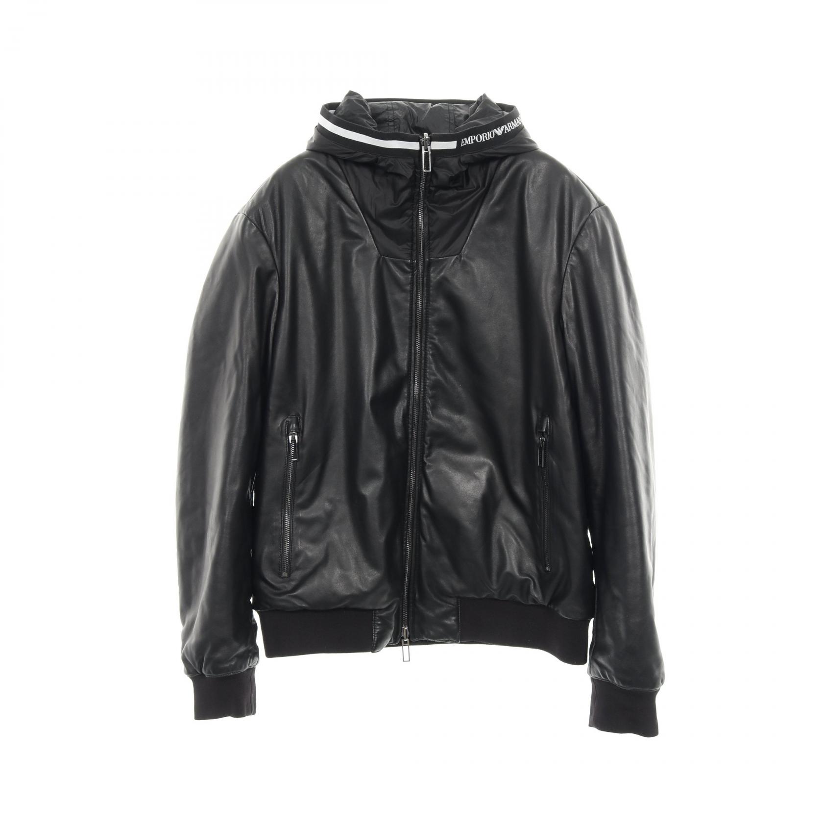 ◆全品5%OFFクーポン対象◆エンポリオ・アルマーニ Emporio Armani ブルゾン 衣料品 アウター レザー ナイロン メンズ ブラック系 【中古】