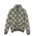 アルマーニ ジーンズ ARMANI JEANS AJ ニットブルゾン 中綿 スタンドカラー ダブルジップ 総柄 フード収納 ハンガー付き XL グレー