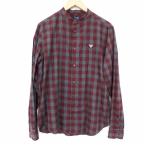 #anc アルマーニジーンズ Armani Jeans 長袖シャツ S グレー 赤 バンドカラー チェック柄 メンズ [894389]