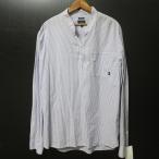 #anc アルマーニジーンズ Armani Jeans 長袖シャツ XXL 水色 白 ストライプ スタンドカラー ロゴ 大きいサイズ メンズ [959419]