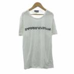 エンポリオアルマーニ EMPORIO ARMANI Tシャツ カットソー L オフホワイト ロゴプリント ラウンドネック 半袖 /HO38 ■GY58 メンズ