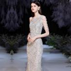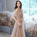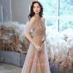 イブニングドレス ホルターネック オフショルダー パーティードレス ロングドレス シャンパンピンク スパンコール キラキラドレス 発表会ドレス 演奏会ドレス A