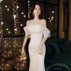 マーメイドドレス イブニングドレス サテン ドレス 白 黒 ワイン赤 発表会ドレス オフショルダー ロングドレス 結婚式ドレス 二次会ドレス ワインレッ