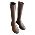 騎士ブーツ レザー 本革 ロングブーツ レディース ジップアップ バイクブーツ ローヒール フラット カジュアル ファッション シンプル