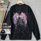 20%off トレーナー 長袖 ヨーロッパ製 RISELIN 綿100% 保温 ウィング 花柄 ゆったり カットソー トップス プルオーバー ロンT メンズ レディース 秋冬