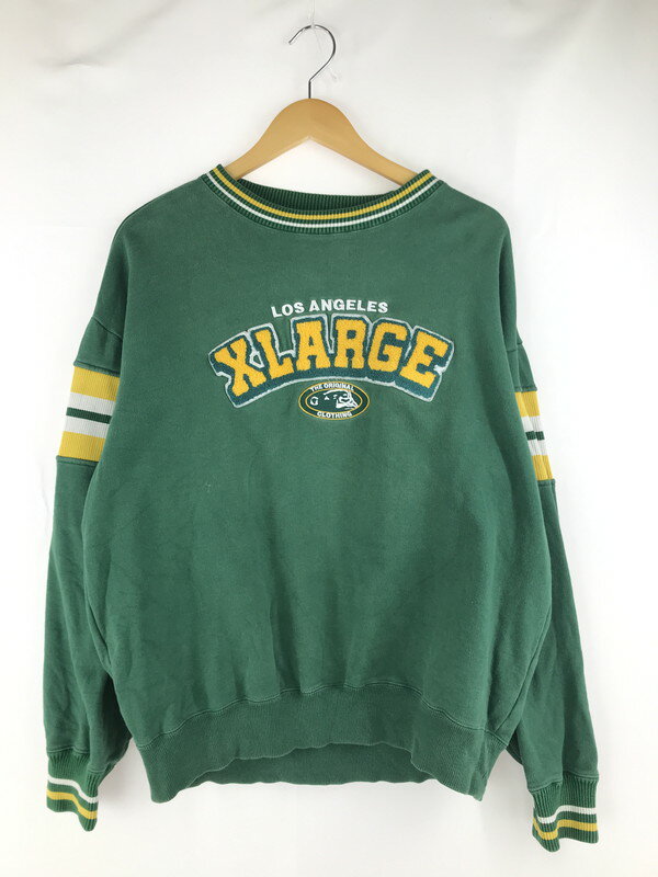 楽天スーパーSALE 30%OFF~【中古品】【メンズ】 XLARGE エクストララージ STRIPED SLEEVE TEAM LOGO CREWNECK SWEAT 101223012007 ストライプスリーブ チームロゴスウェット トレーナー 142-250228-hi-12-tag サイズ:M カラー:グリーン 万代Net店