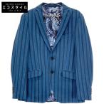 ETRO エトロ 1187Q 22年製 ブルー 裏地ペイズリー柄 ストライプシングルブレストジャケット ブルー×ネイビー 46 ジャケット コットン メンズ 中古