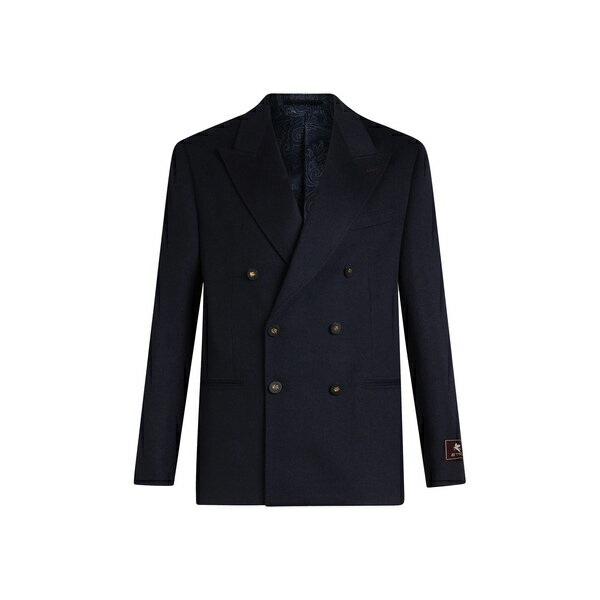 エトロ メンズ ジャケット&ブルゾン アウター Navy Blue Cashmere Double Breasted Blazer Blue