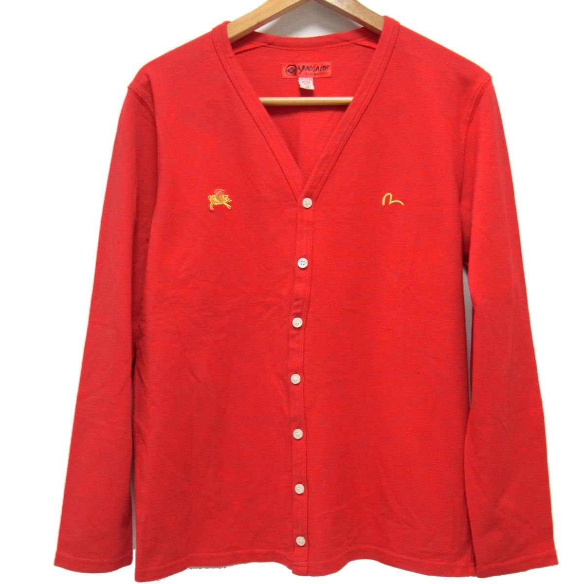 【中古】美品☆EVISU YAMANE 鹿の子生地 カーディガン 羽豚 ヤマネ エヴィス メンズ レッド コットンジャケット