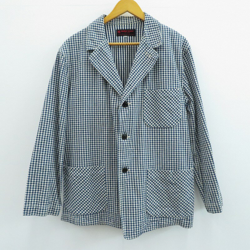 【中古】EVISU | エヴィス エルボーパッチ/チェック柄3Bテーラード テーラードジャケット ブルー サイズ:42【瀬戸大橋店】