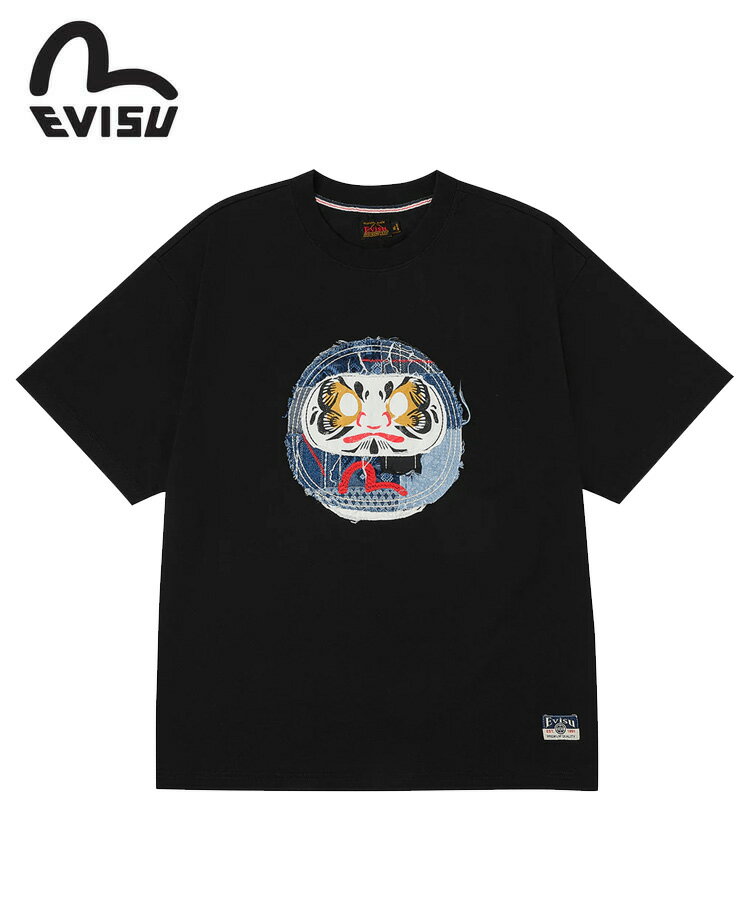 EVISU エヴィス エビス メンズ Tシャツ HT SASHIKO DARUMA APPLIQUE S/S TEE ブラック 2EAHTM5TS1171RXCT トップス 半袖 ダルマ ベーシック クルーネック メンズファッション アメカジ ストリート