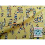 フルオーダーシャツ綿100%黄色地マルチカラー60番手ローンプリント建物柄日本製(i000218)