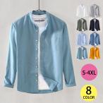 メンズ 長袖 シャツ カジュアルシャツ バンドカラーシャツ トップス 無地 スタンドカラー ビジネスカジュアル 40代 50代 60代 春物