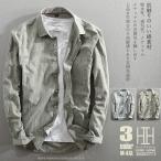 カジュアルシャツ メンズ 無地 長袖 ポケット付きコットン シンプル トップス