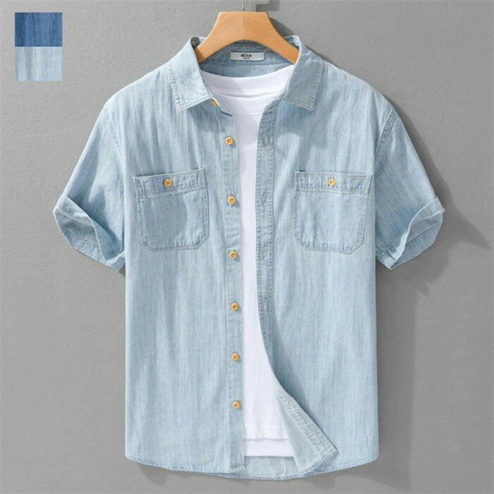 デニムシャツ メンズ 半袖シャツ 夏 夏服 涼しい 半袖 デニム シャツ 綿シャツ 綿100% 胸ポケット付き 開襟シャツ 開襟 トップス ウエスタンシャツ 通気性よい 無地 ゆったり おしゃれ カジュアルシャツ 大きいサイズ 体型カバー ファッション 着心地よい 通勤 通学 お兄系