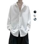 カジュアルシャツ メンズ 3色 無地 長袖 ブラック ホワイト 冷感 ゆったり レギュラー 通勤 ビジネス ビジネス 学生 大人 春夏
