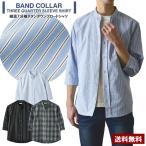 最終処分 シャツ メンズ 7分袖 カジュアル バンドカラー ノーカラー コットン 綿混 イージーケア チェック ストライプ X2P セール【パケ2】 爆買
