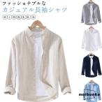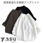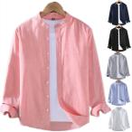 バンドカラー メンズ リネンシャツ カジュアルシャツ ノーカラー ドライ 日除け サーフ系 日除け対策 無地 シンプル 長袖 夏服 春服 父の日 プレ