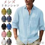リネンシャツ カジュアルシャツ メンズ 長袖 無地 カラフル 春夏 通気 リネン 綿 麻 日焼け対策 リネン 白シャツ ス 夏 定番 シンプル