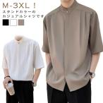 カジュアルシャツ 半袖 シャツ メンズ 夏 アイスシルク シャツ スタンドカラー 立ち襟 冷感シャツ 男性用 チャイナ風 韓国風 スリム 大きいサイズ