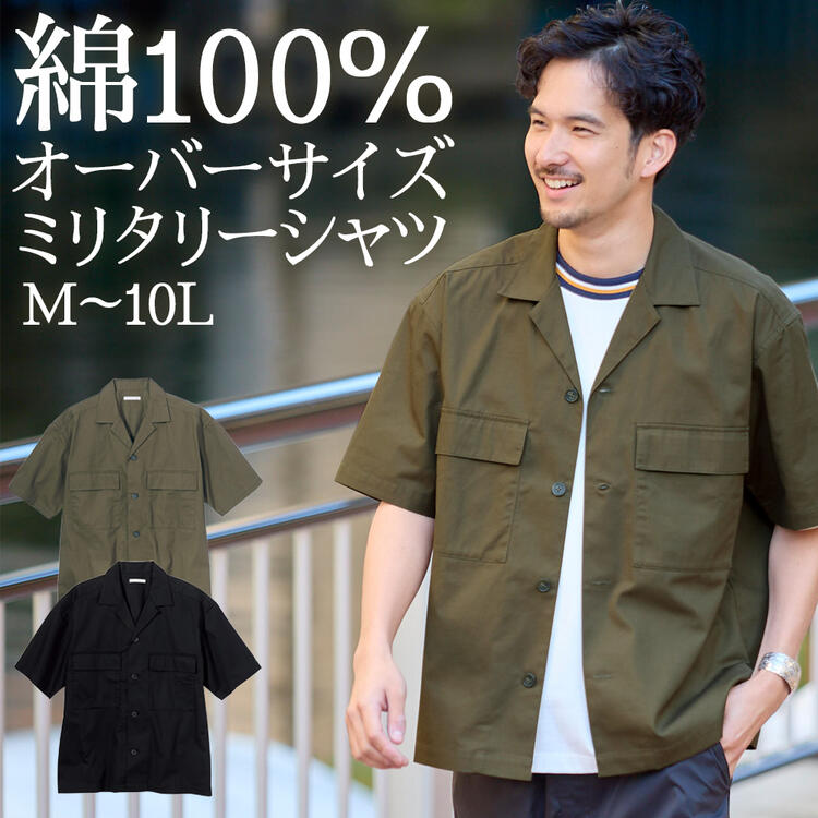 シャツ 綿100% オーバーサイズ 5分袖 ミリタリーシャツ M-10L 大きいサイズ メンズ ニッセン nissen