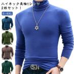 2枚セット 長袖tシャツ ハイネック タートルネック メンズ ハイネックtシャツ カットソー ロンT 長袖 インナーシャツ スリム 細身 タイト ストレッチ 春 秋 冬 トップス 防寒 男性 肌着 モーダル生地 綿 無地