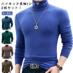 2枚セット 長袖tシャツ ハイネック タートルネック メンズ ハイネックtシャツ カットソー ロンT 長袖 インナーシャツ スリム 細身 タイト スト