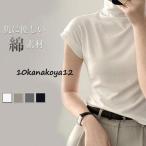 Tシャツ レディース フタートルネック tシャツ レディース ハイネック 半袖 無地 薄手 首 インナー トップス カットソー tシャツ ロンTサマー 白 黒