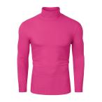 Allegra K メンズ タートルネック Tシャツ ハイネック カットソー 長袖 無地 薄手 ストレッチ カジュアル ディープピンク 38