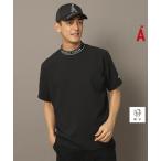 tシャツ 撥水加工 ロゴラインストレッチモックネックT メンズ