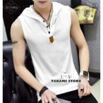 カットソーノースリーブ フード付き メンズ トップス タンクトップ パーカー 袖なし プルオーバー 大きいサイズあり 無地 シンプル 着回し 定番 カ
