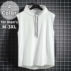 パーカー タンクトップ メンズ ノースリーブ カットソー フード付き トップス プルオーバー 袖なし 無地 おしゃれ かっこいい カジュアル デイリー