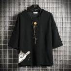 メンズ Tシャツ カットソー 猫柄 ストレッチ 夏 トップス 20代 30代 おしゃれ