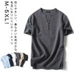Tシャツ メンズ 半袖 ヘンリーネックTシャツ おしゃれ トップス Vネック 綿麻風 半袖Tシャツ ティーシャツ ヘンリーネック tシャツ カットソー