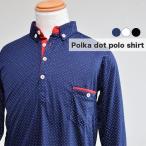【大特価】メンズ ポロシャツ Tシャツ カットソー 長袖 ス ボタンダウンカラー ヘンリーネック 襟付き シングルカフス 胸ポケット付き ドット柄 水玉
