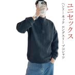 送料無料 ヘンリーネック ロングスリーブTシャツ カットソー メンズ レディース 男女兼用 ユニセックス トップス クルーネック 長袖 ブラック ホワイト おしゃれ ロンT シンプル 大きめ 無地 ゆったり 肉厚 厚手